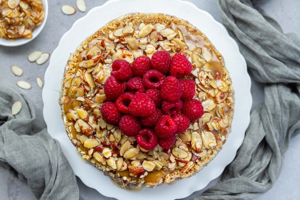 PARA HACER LA COBERTURA DE ALMENDRA CARAMELIZADA: Derrite la mantequilla en una olla junto con el azúcar, la leche y la sal. Hasta que empiece a espesar. Retirar del fuego y añadir las almendras. Reparte sobre la torta al momento de servir.